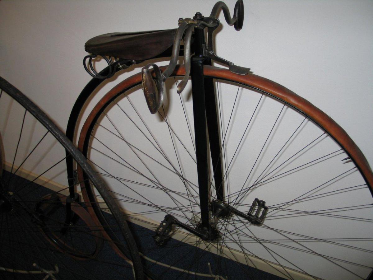 A penny farthing with pneumatic tires is extremely rare. The different wheel sizes were a problem and the years when the first pneumatics were developed (1891-92) were also the last years the ordinary was built. If you ever find one of these bikes with the remains of original tires: don’t touch it!